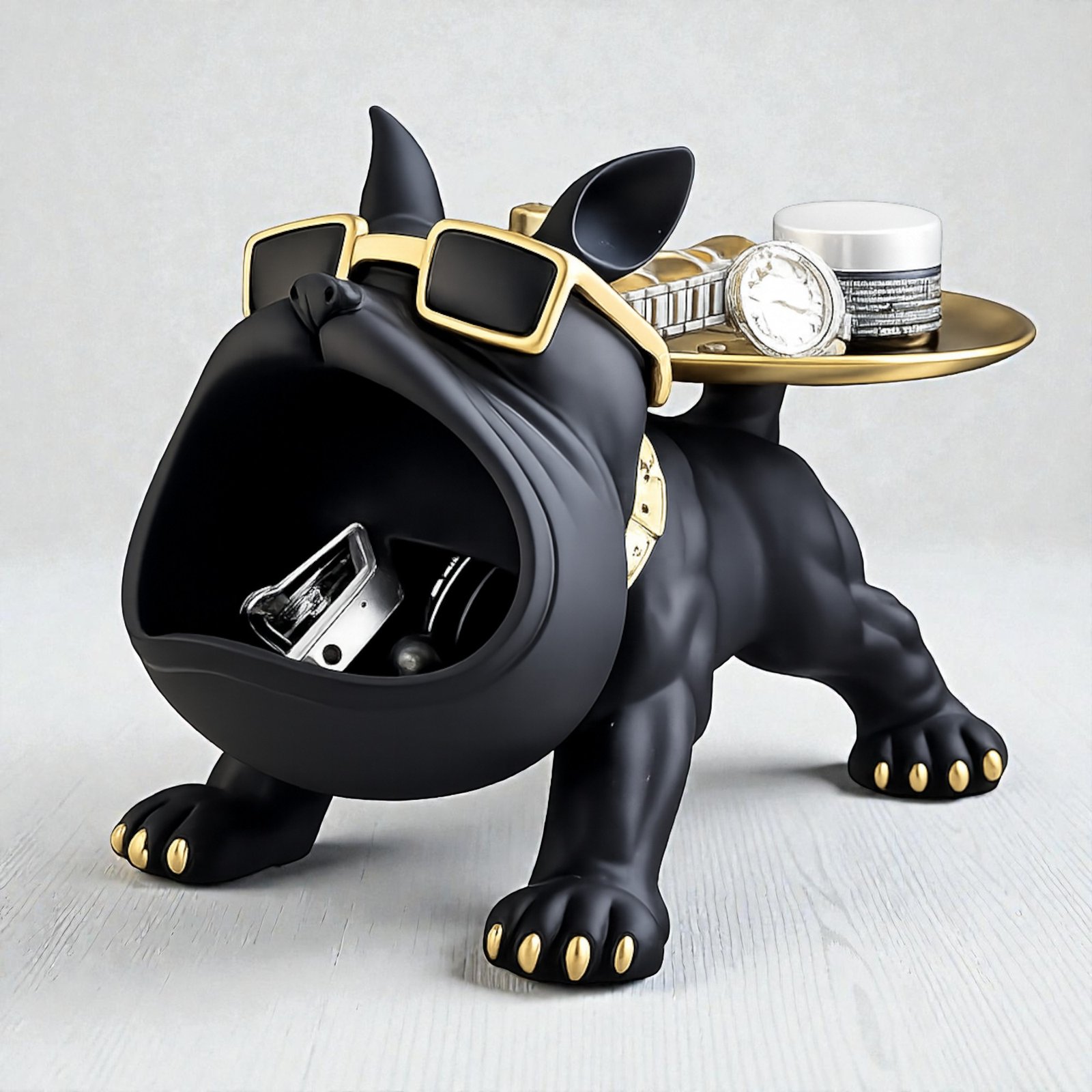 This dog figurine organizer is lightweight enough to move easily during decor updates but stable enough to stay firmly on flat surfaces. It can be paired with books, lamps, trays or wall art to create a curated interior look. The bulldog showpiece also photographs well, making it suitable for home decor content, styling photos and social media visuals.