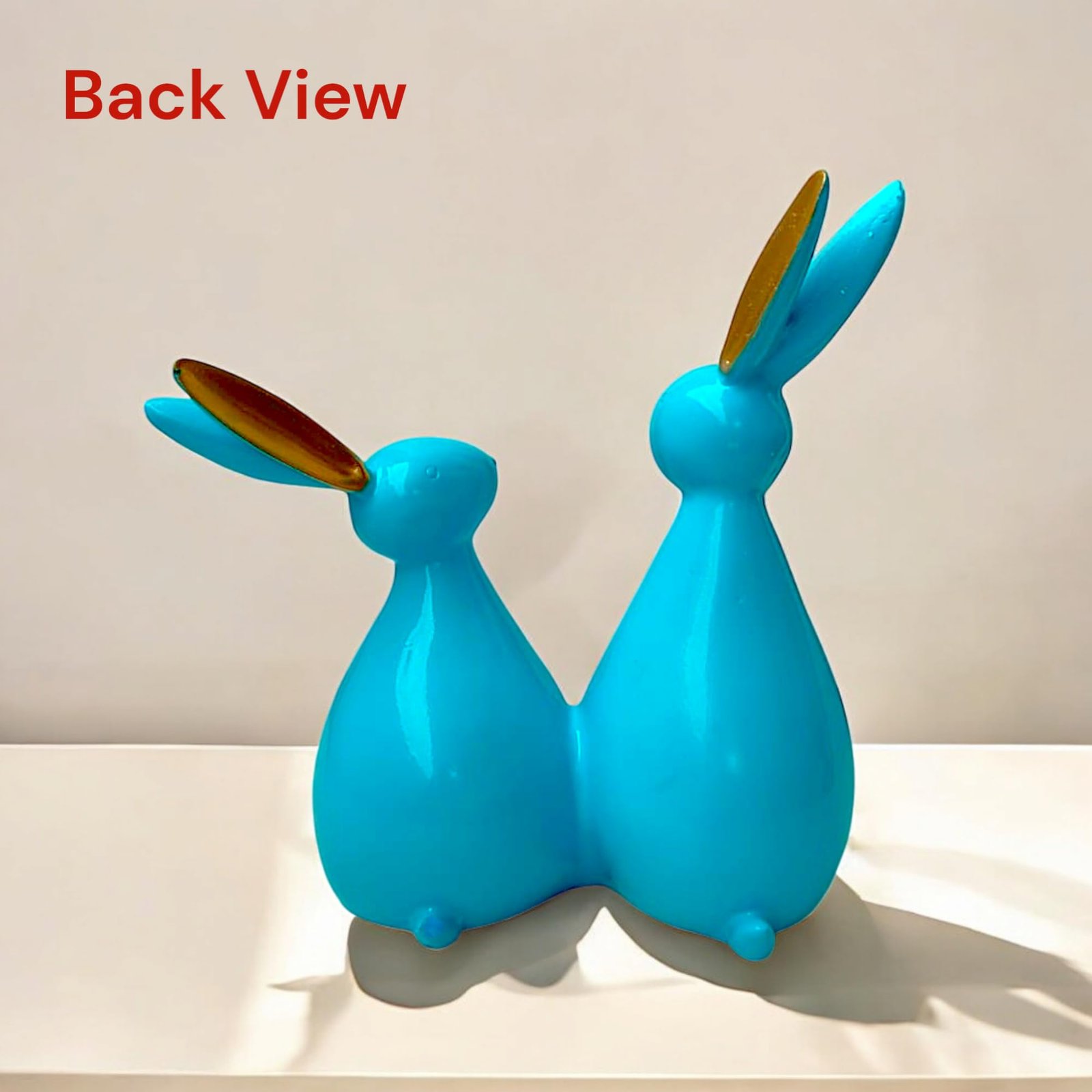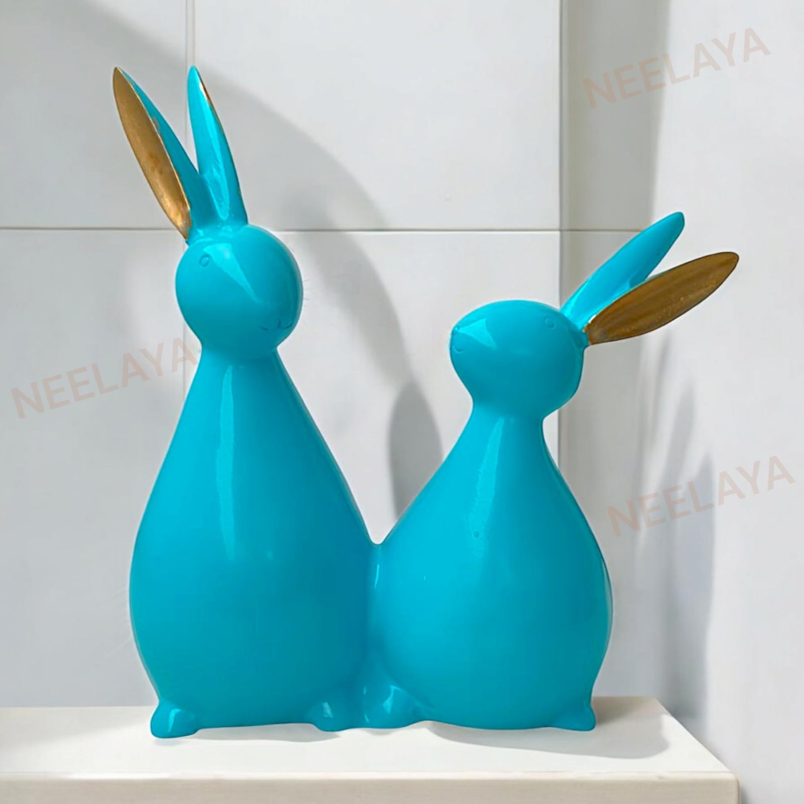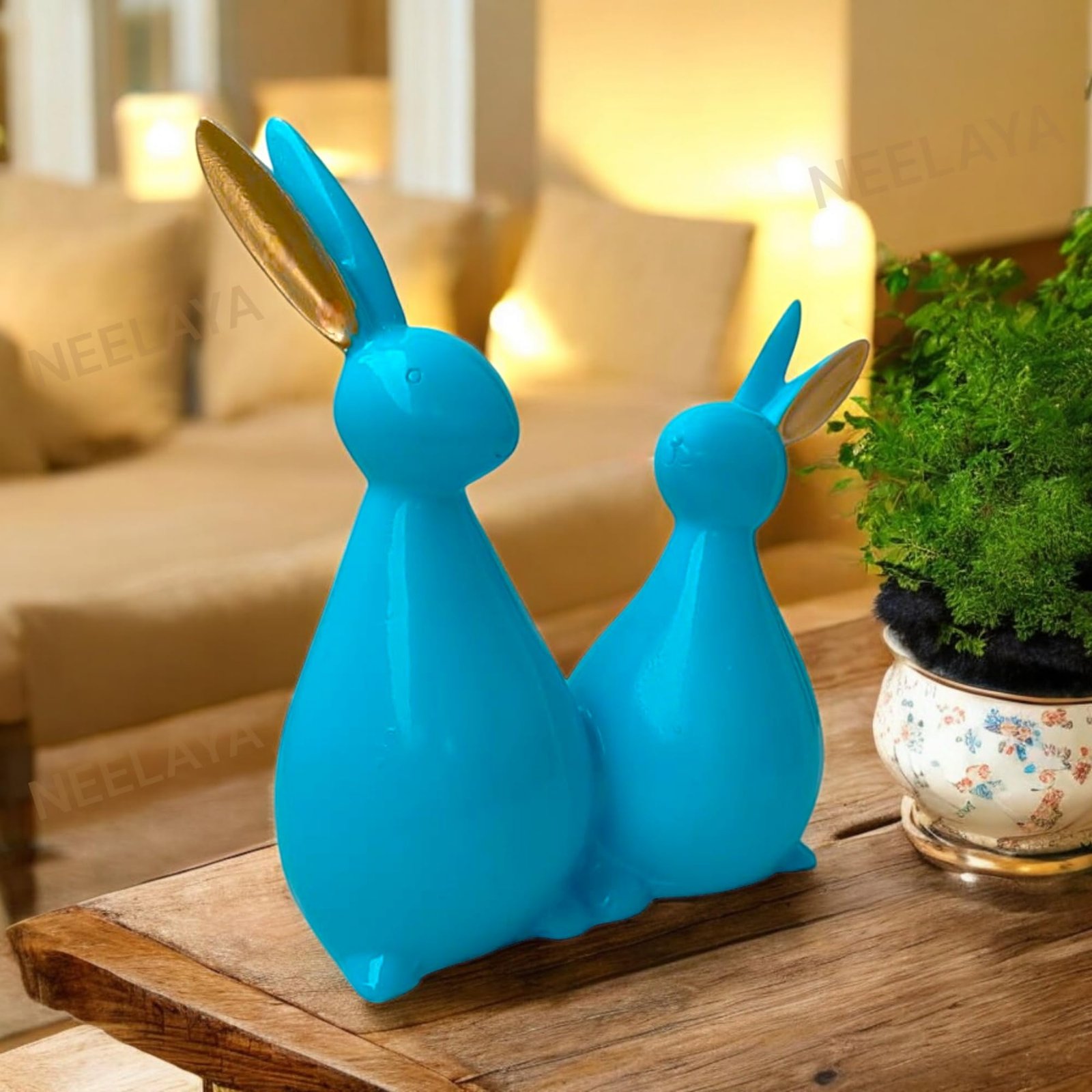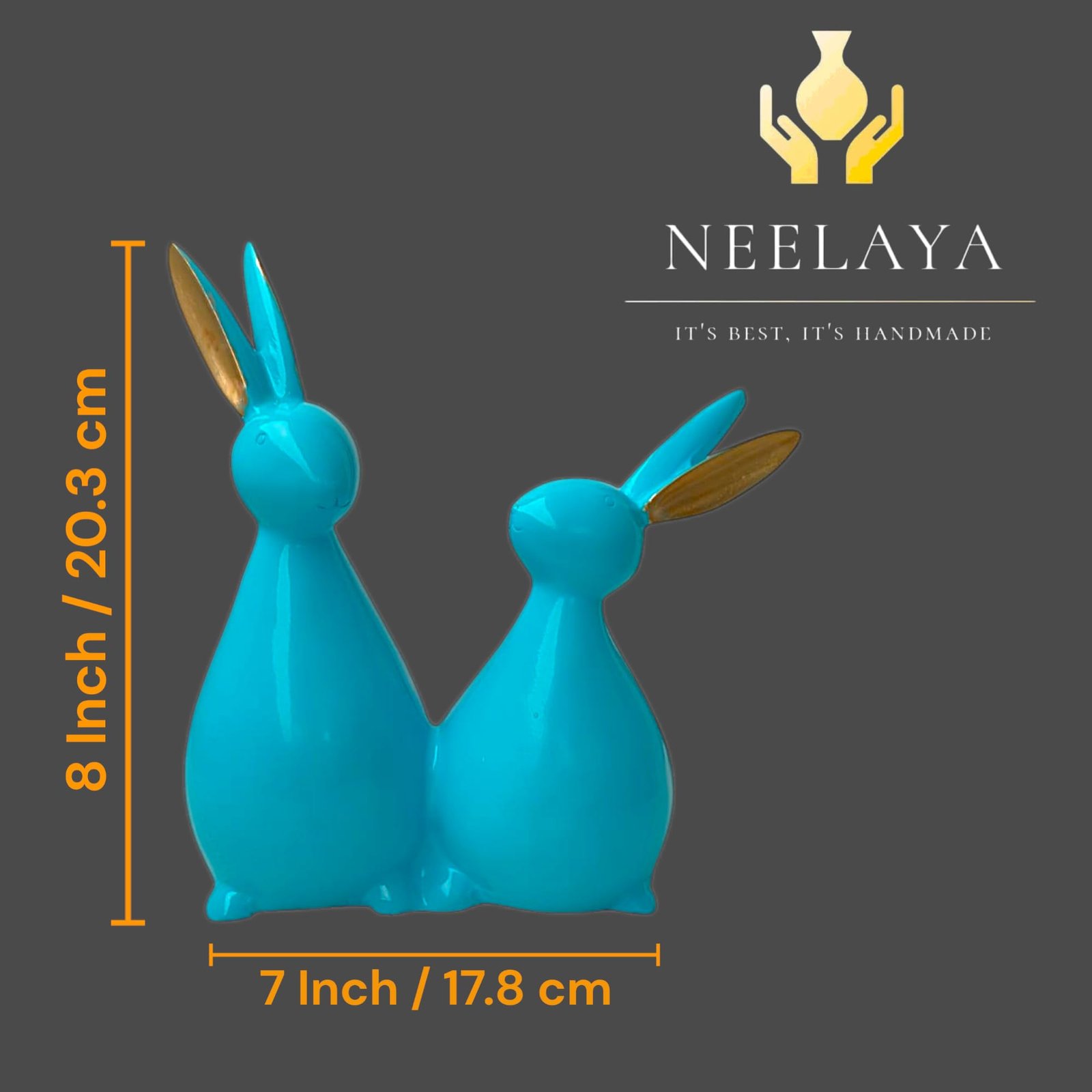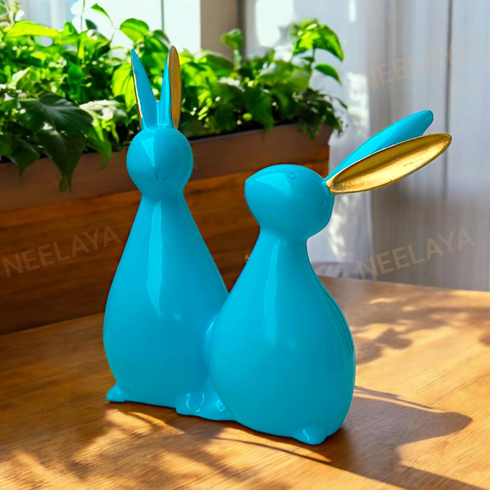 Rabbit Showpiece – Premium Bunny Couple Figurine Polyresin Statue for Home Decor & Romantic Gifting Blue (20.3 cm)